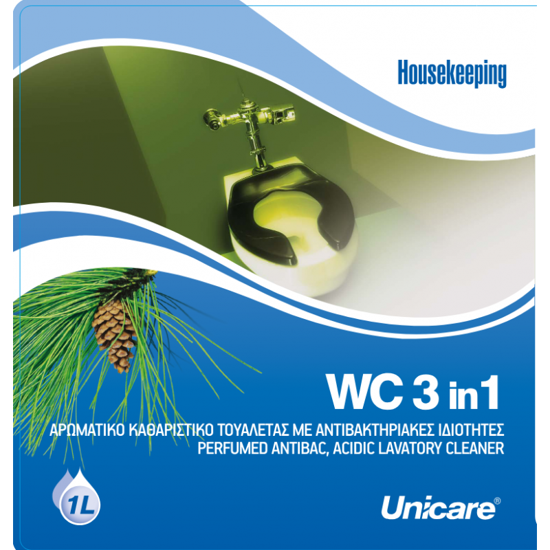 UNICARE WC 3 IN 1 1L - daily toilet bowl cleaner concentrate. Effectively removes stains and deposits from toilet bowls and urinals